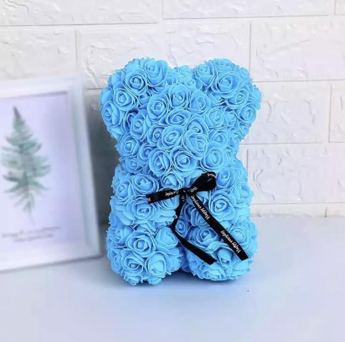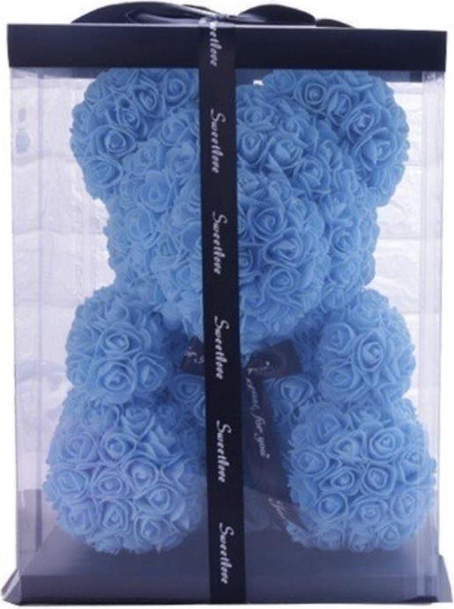 Rozen teddybeer 25cm Blauw -rozenbeer