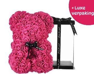 RozenbeerStuur jouw speciale ontvanger een cadeau gemaakt van Fuchsia kunstrozen dat voor altijd meegaat! Een verbluffende decoratieve teddybeer gemaakt van synthetische rozen in een romantische kleur. Het perfecte geschenk dat er geweldig uitziet als decoratiestuk in het huis of kantoor van je geliefde.